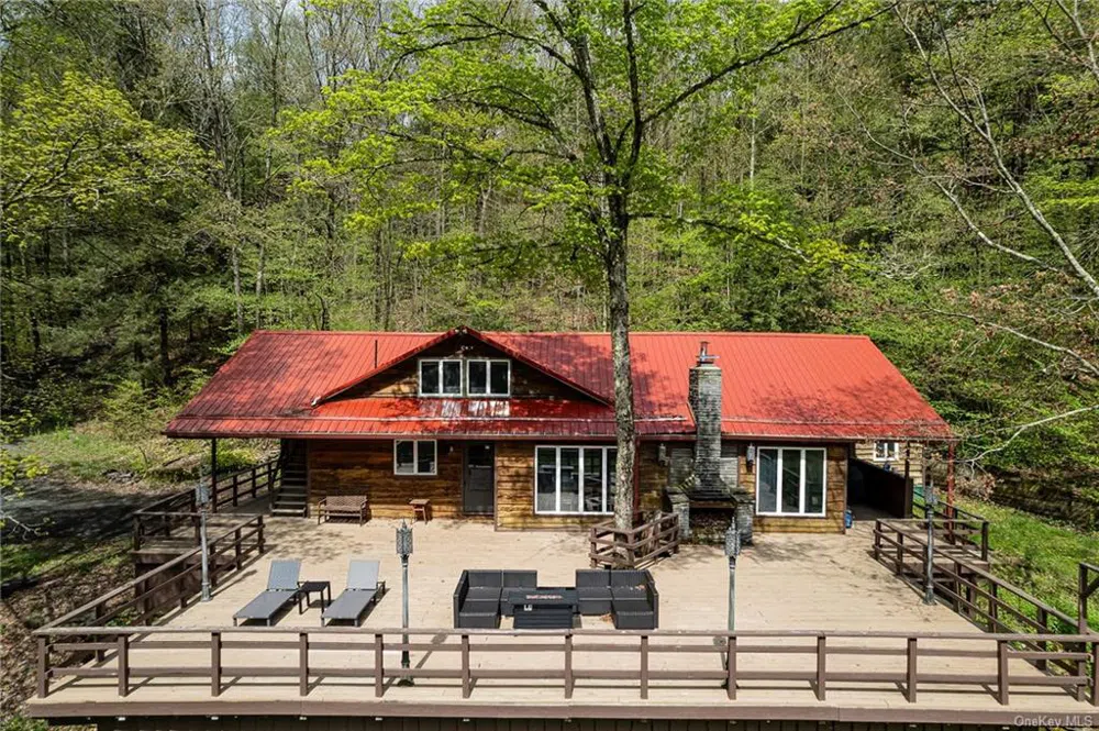 Nestled in a verdant Catskills valley, Hidden Hollow is a unique opportunity for buyers looking for privacy and for a generous home. Set on 12.5 acres, this home features 4 bedrooms and 3 full bathrooms. The ground floor is an open plan, loft-like space with kitchen, dining, and living room flowing one in to the next. A bluestone fireplace with woodstove insert makes for cozy nights. Three king-size bedrooms and two full baths round out the ground floor. Upstairs is a bonus space - flexible for pretty much any use you might need. An additional bed and bath are tucked upstairs for overflow. The real highlights come outside. Enjoy a 1500+ square foot deck overlooking your rolling lawn that meanders alongside Tar Hollow Creek. The ever present hush of the creek and echo of birdsong is what Catskills dreams are made of. Don't miss this one-of-a-kind property. Come take a look.