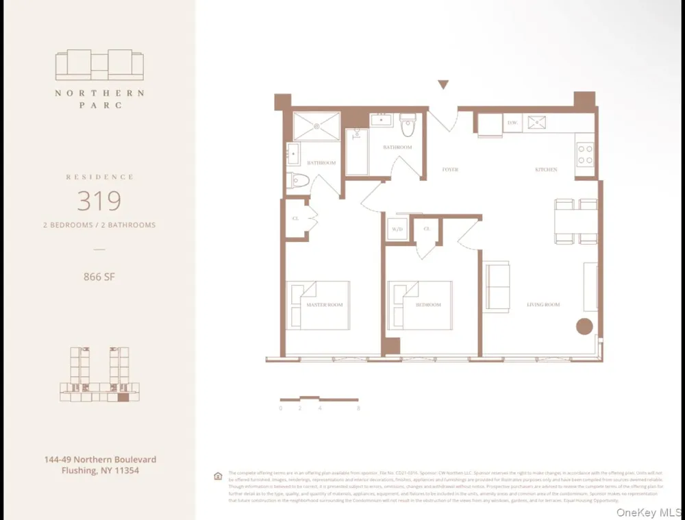 Brand New Northern Parc Condominium in the heart of Flushing Northern Blvd. This 2-bedroom, 2-baths with 866 sqft and with open concept layout. This unit features hardwood floors, natural, top of the line appliances, quartz countertops, chef’s kitchen, washer and dryer and premium amenities. The building's prime location offers a variety of great restaurants, supermarkets and shops just steps away. Sponsor Advantages: Simplified purchasing process (often no board approval) and brand-new construction quality. Building amenities include: Package Room Full-time doorman Fitness center Laundry in unit Elevator Wheelchair access Parking Rooftop access